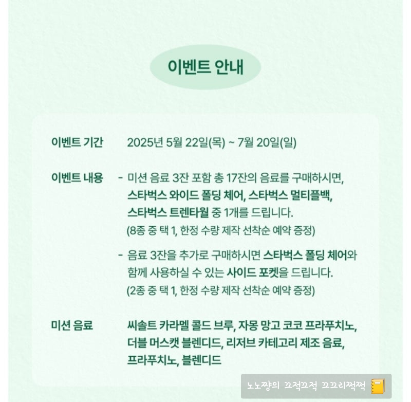 미션 음료 3잔 포함 총 17잔을 구매하면 굿즈를,