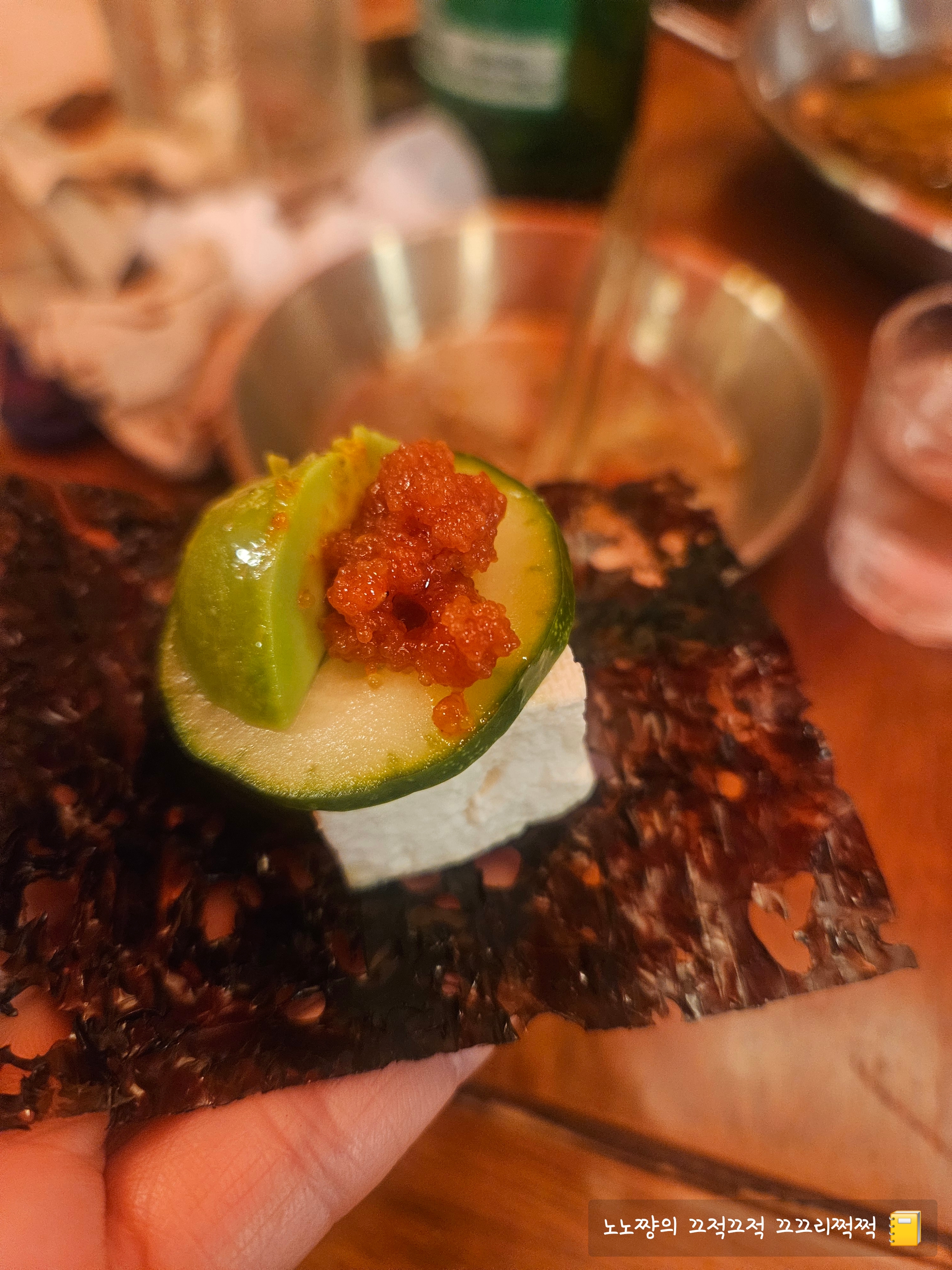 청어알쌈은 플레이팅부터 시선을 사로잡는 메뉴예요.