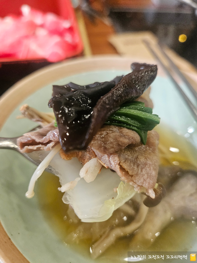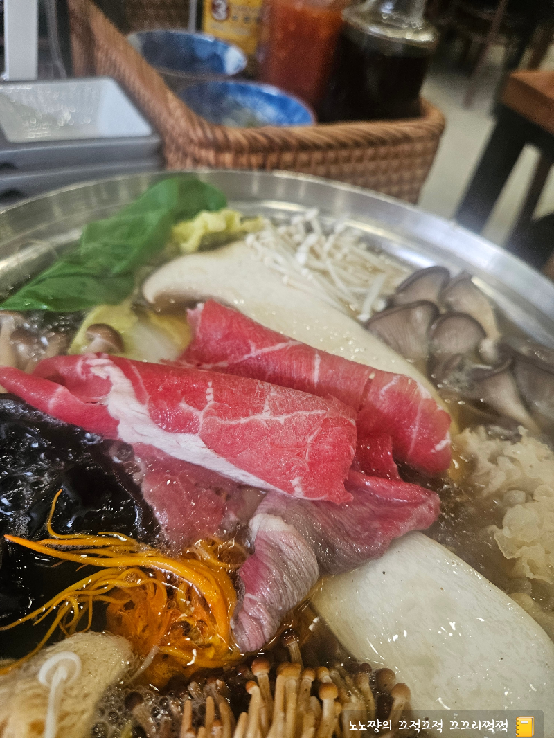 일반 샤브샤브보다는 다양한 버섯이 올려져 있다 보니 더 고급지게 느껴졌어요。