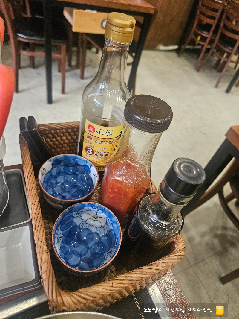 간장, 종지 등이 세팅되어 있어요.