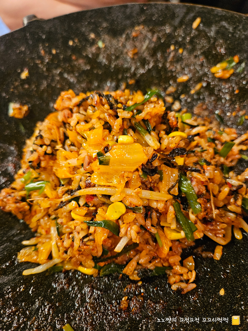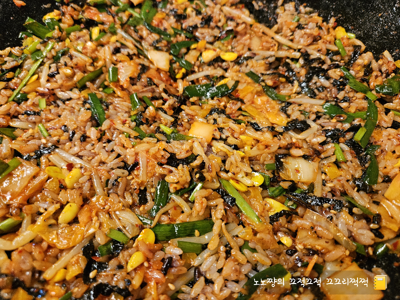 바삭하게 눌러붙은 밥알과 짭조름한 양념,