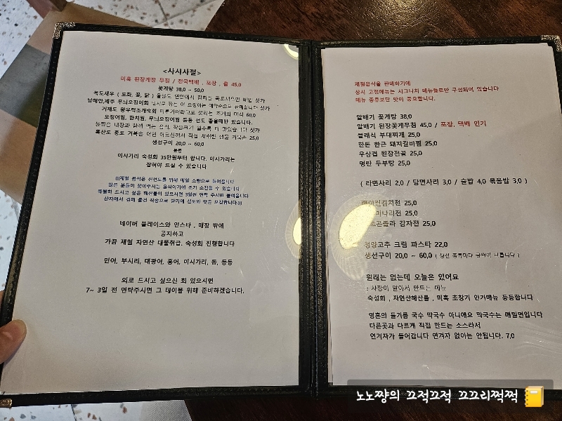 지금은 제철 음식들로 채워져서 뭘 시켜야 할지.... 좀 고민하게 되는 부분이 아쉽기는 한데요.