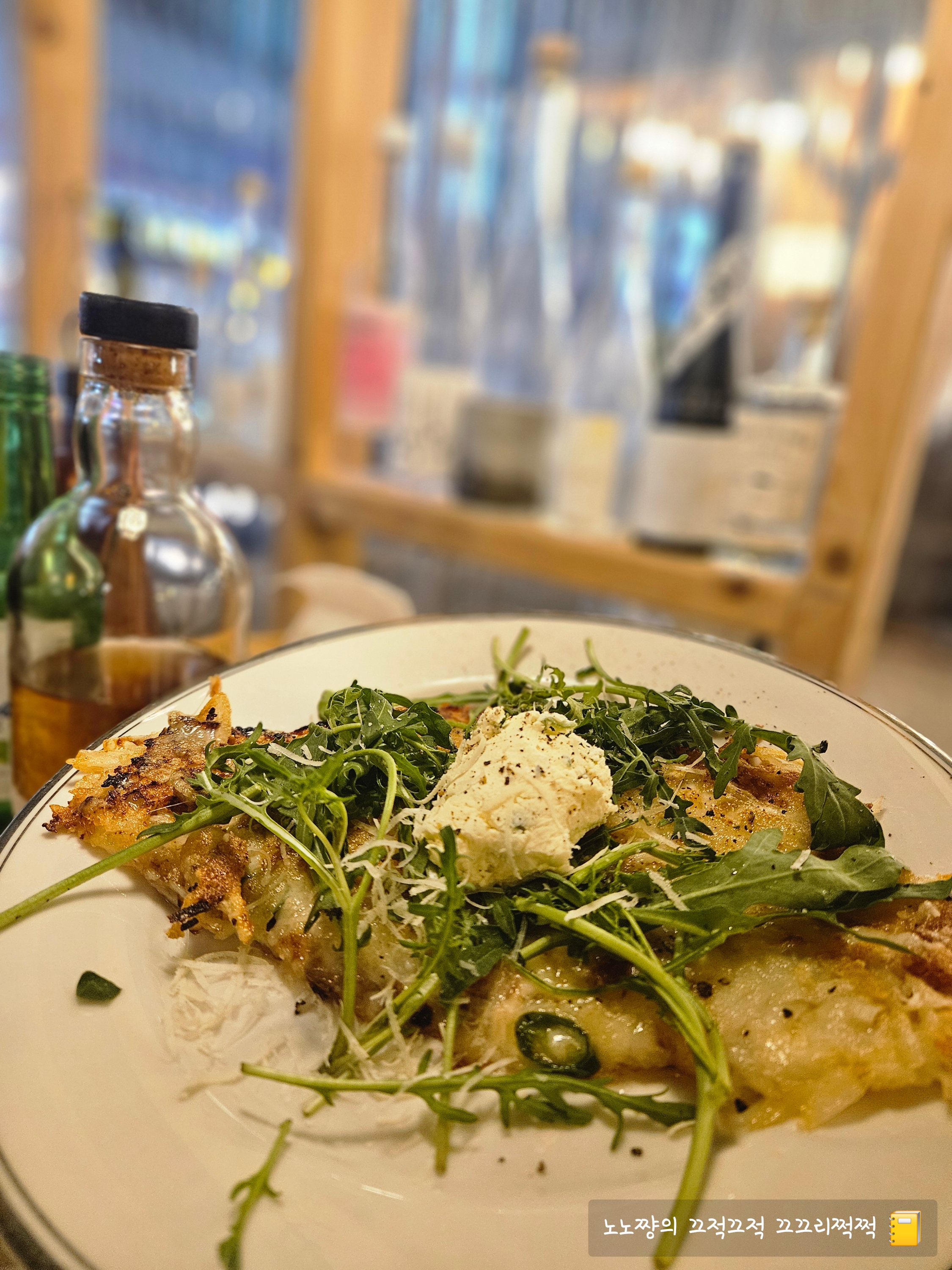 감자전인데 루꼴라가 듬뿍 올려지고