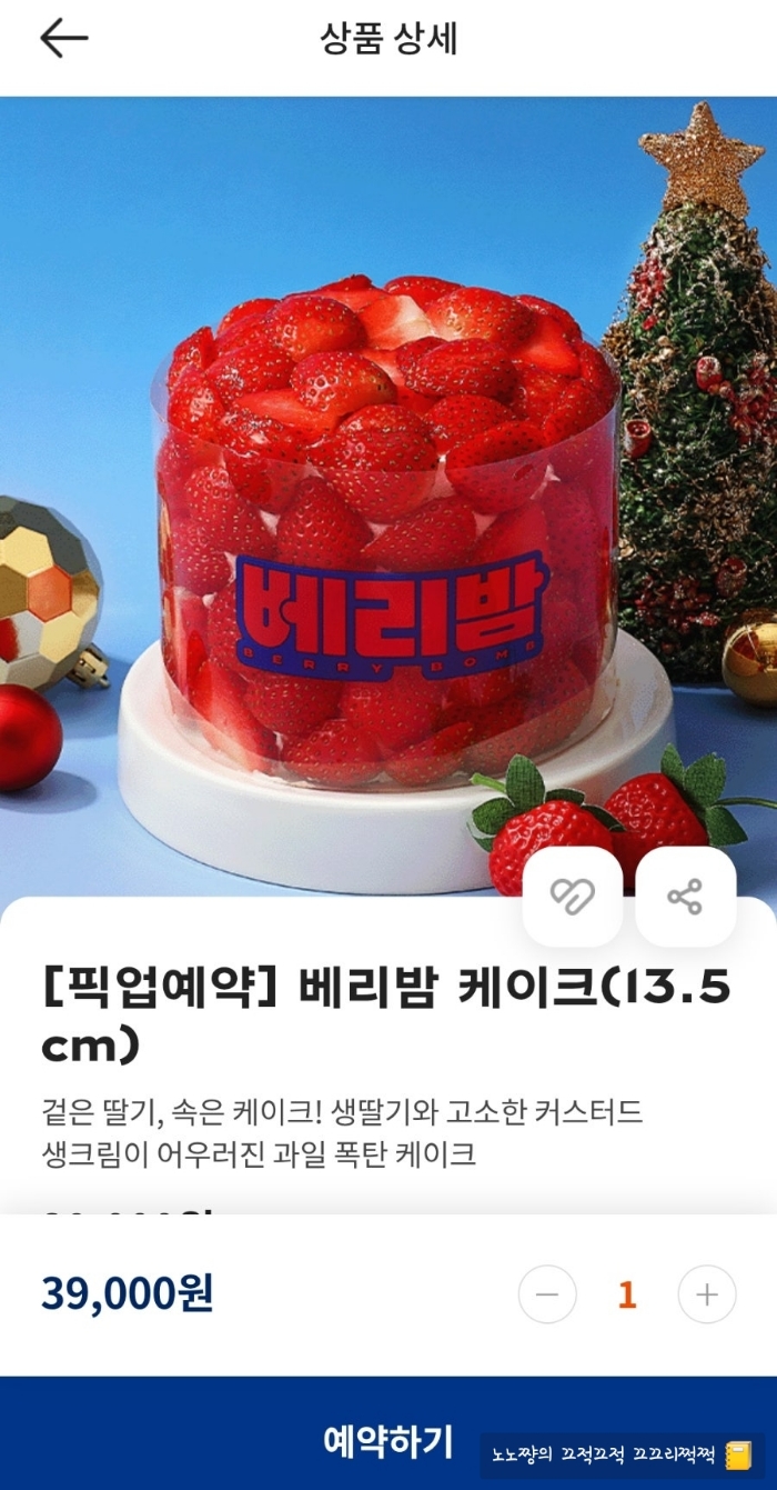 베리밤 레드 케이크(15cm): 정가 39,000원, 사전예약 31,200원